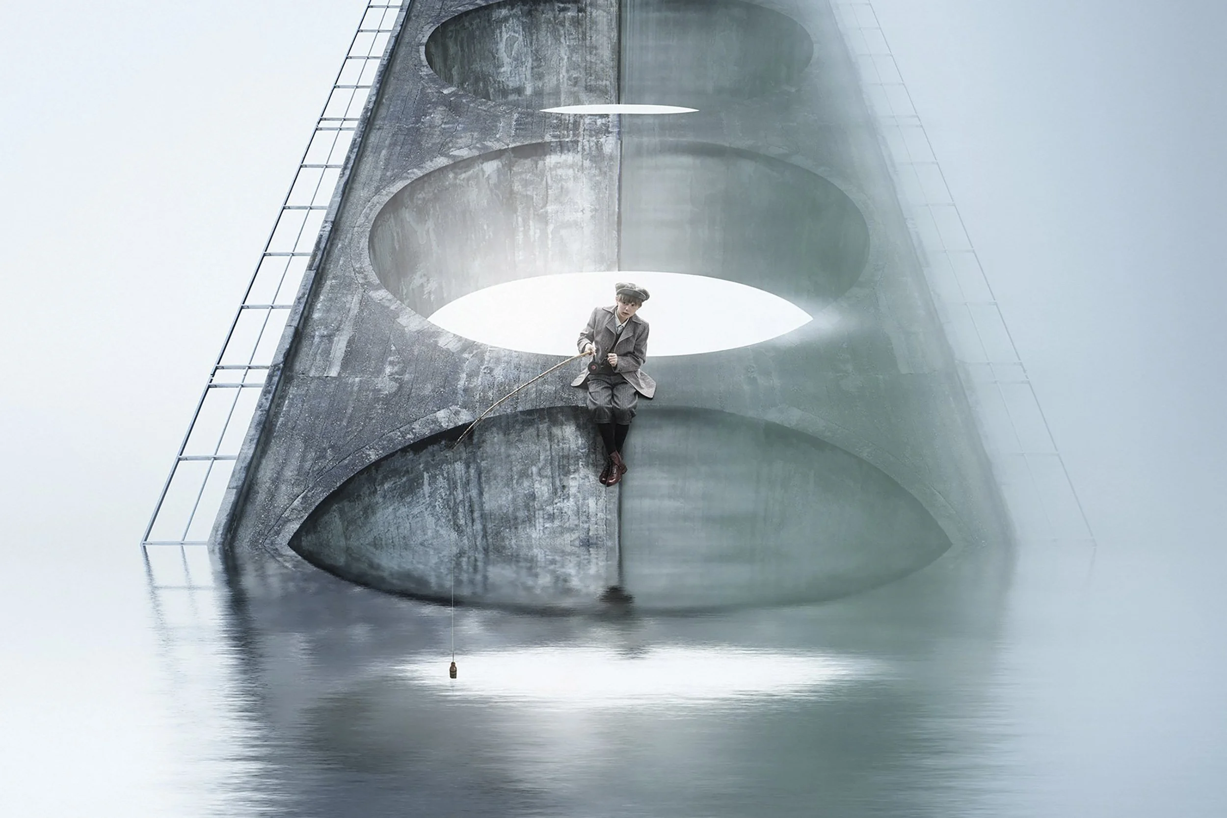 Der Brückenfischer: Ein ‘trompe l’oeil’ im Stile der 20er Jahren, inspiriert vom Jahrzehnt der Entstehung der Wohleibrücke. Landschaftsaufnahme und Studioaufnahme wurden in einer aufwändigen Montage/Compositing vereint und täuschen die Sinne. Eine freie Arbeit von Terence du Fresne. Idee, Fotografie, Casting, Bildbearbeitung/Compositing von Terence du Fresne, Fotograf, Bern.